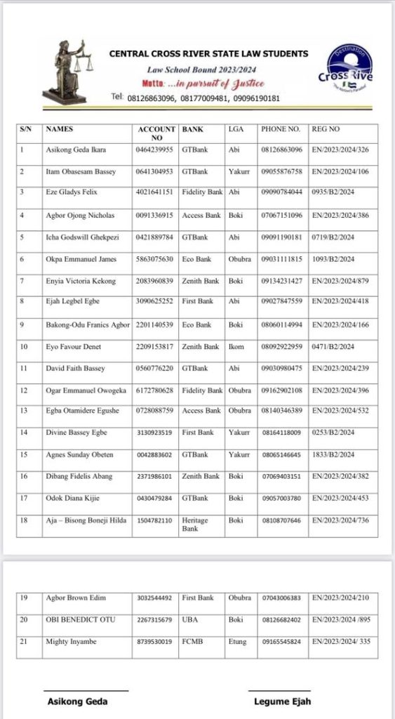 The students said: “Your significant contribution will lighten the financial burden being faced by our parents and us as students and pave the way for us to focus more on our educational pursuits to achieve our goals at the Nigerian Law School seamlessly.”