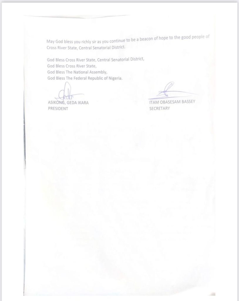The students, in an appreciation statement signed by the President, Geda Asikong, and Secretary Obasesam Itam, said that the payment of N200,000 each to 21 law school students from the senatorial district for the current academic session was an example of a display of kindness and support.